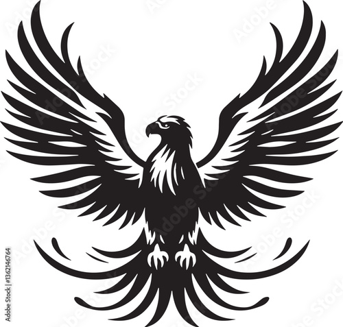 © graphic, Fototapeta premium Black Color Eagle Silhouette Vector Illustration, Solid White Background