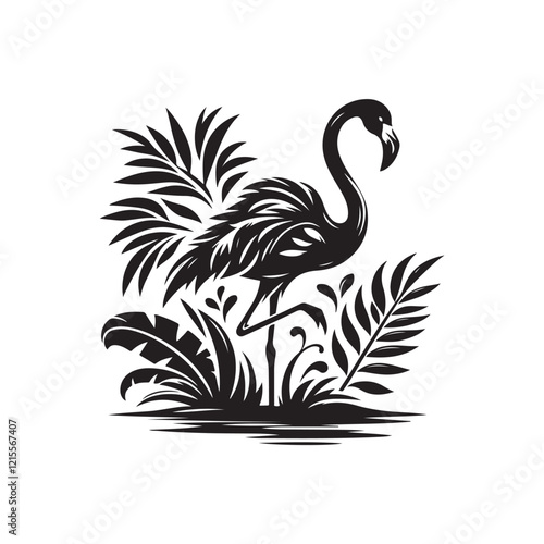 © Md Shimul Hossain, Obraz premium Black Color Flamingo silhouette design Vector Illustration, Solid White Background (9).eps