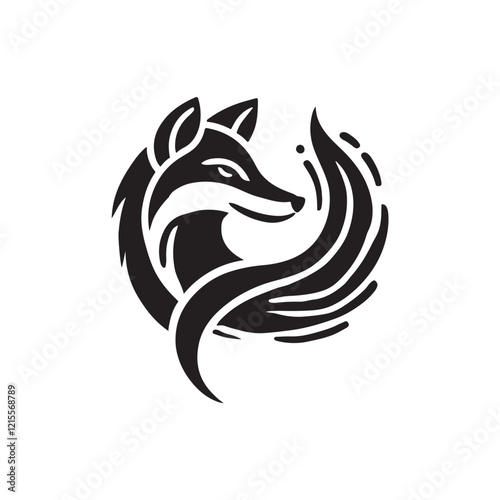 Naklejka premium Black Color Fox silhouette design Vector Illustration, Solid White Background...