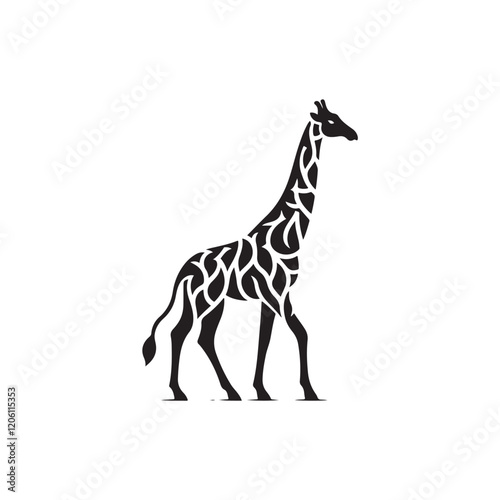 Naklejka premium Black Color Giraf silhouette design Vector Illustration, Solid White...