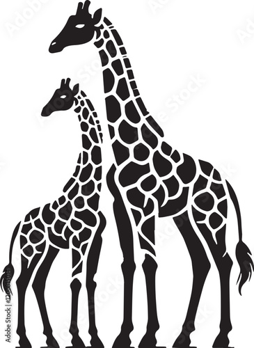 © graphic, Obraz premium Black Color Giraffe Silhouette Vector Illustration, Solid White Background