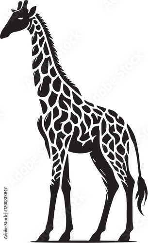 © graphic, Naklejka premium Black Color Giraffe Silhouette Vector Illustration, Solid White Background