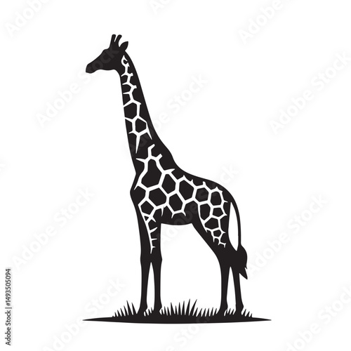 © blackworld, Naklejka premium Black Color Giraffe Silhouette Vector Illustration, Solid White Background. minimal vector design