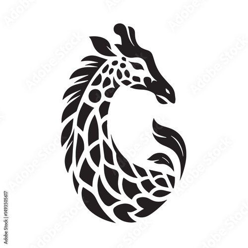 © blackworld, Obraz premium Black Color Giraffe Silhouette Vector Illustration, Solid White Background. minimal vector design