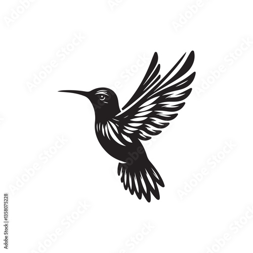 © Md Shimul Hossain, Naklejka premium Black Color Hummingbird Silhouette Vector Illustration, Solid White Background