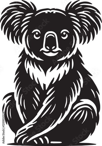 © graphic, Fototapeta premium Black Color Koala Silhouette Vector Illustration, Solid White Background