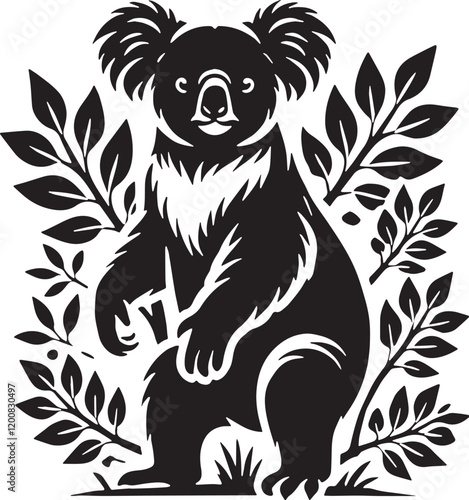 © graphic, Fototapeta premium Black Color Koala Silhouette Vector Illustration, Solid White Background