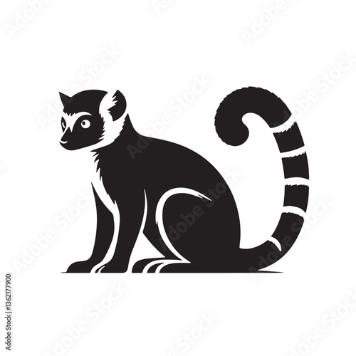 © graphic, Fototapeta premium Black Color Lemur Silhouette Vector Illustration, Solid White Background