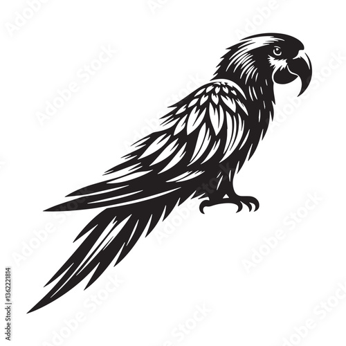 Obraz premium Black Color Parrot Silhouette Vector Illustration, Solid White Background