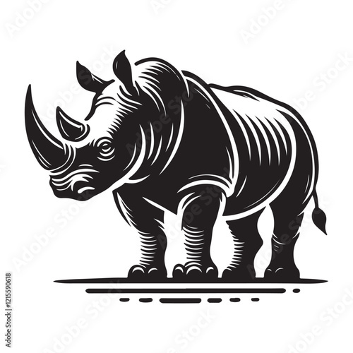 Fototapeta premium Black Color Rhinoceros silhouette design Vector Illustration, Solid White Background (1).eps