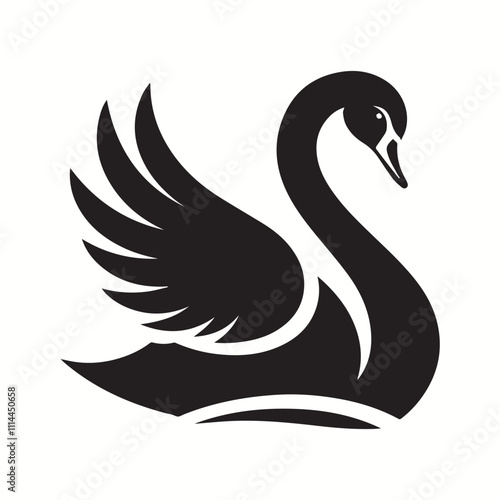 © Lovely, Naklejka premium Black Color Swan Silhouette Vector Illustration, Solid White Background.