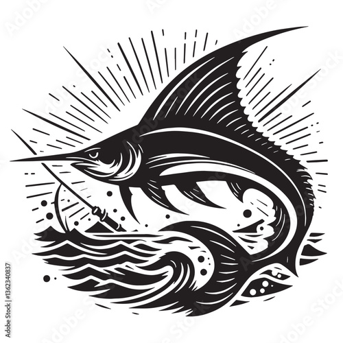 © graphic, Naklejka premium Black Color Swordfish Silhouette Vector Illustration, Solid White Background