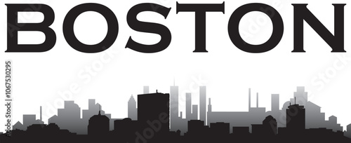 Obraz premium Black colored silhouette city skyline of city of Boston on white background with inscription of the name of the city