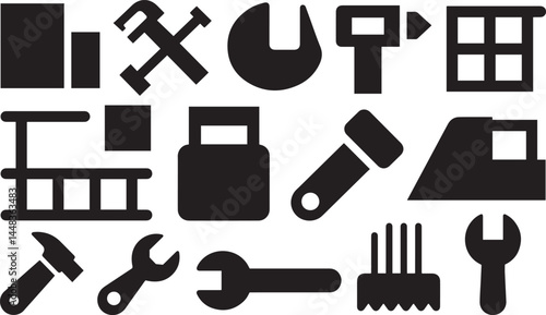 © Mizanur Rahman, Obraz premium Black Construction Tools Icon Set on White Background