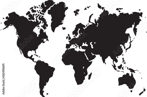 © Khairun, Obraz premium Black continents on white background world map vector