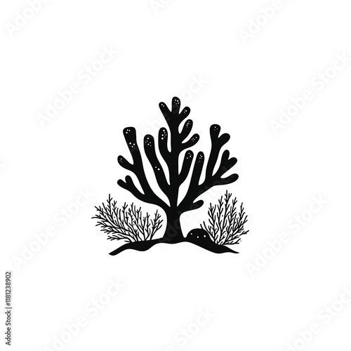 © Indri, Naklejka premium Black coral illustration with surrounding flora.