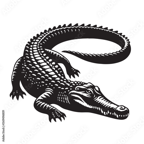 Fototapeta premium Black Crocodile Silhouette Vector, High Quality Illustration on White Background