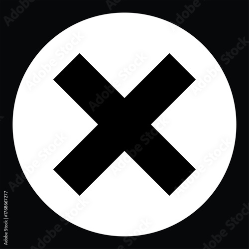 © Ghaffar.Arts, Fototapeta premium Black Cross Mark In a White Circle Simple Vector Icon Isolated on Black Background For Draphic Design And User Interface