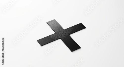 Fototapeta premium Black cross shape on a minimalist white background surface