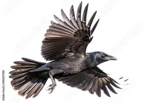 Obraz premium Black crow flying on white background isolated on white background as transparent. PNG. AI GENERATED.