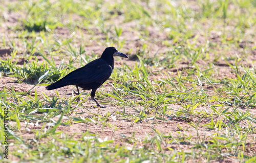 Fototapeta premium black crow in the grass on the nature