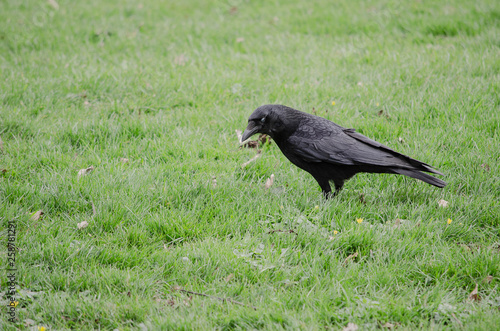© Katarzyna, Obraz premium black crow on the grass