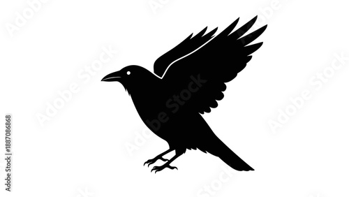 Fototapeta premium Black Crow Silhouette Flying Isolated on White Background, Vector Icon