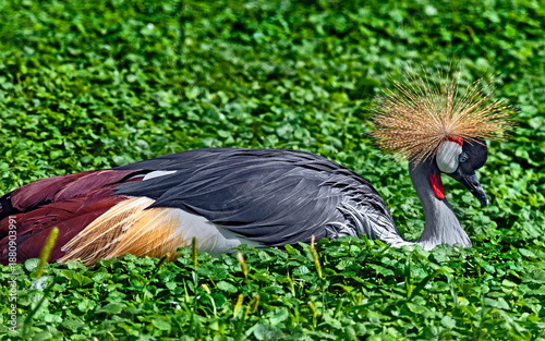 © Mikhail Blajenov, Fototapeta premium Black crowned crane on the lawn. Latin name - Balearica pavonina