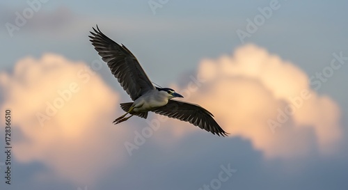 © kapten, Fototapeta premium Black crowned night heron flying