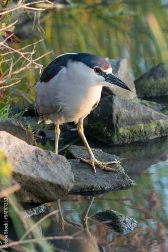 Naklejka premium Black-crowned Night-Heron, Nycticorax nycticorax. Photographed in the San Francisco Bay Area, California. May 2022