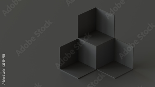 Fototapeta premium Black cube boxes backdrop display on black background. 3D rendering.