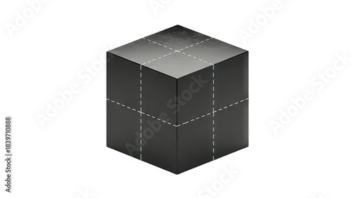 © anton, Obraz premium Black Cube with Dashed Lines on White Background