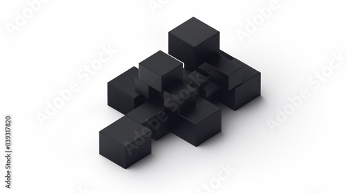 Fototapeta premium Black cubes arranged in a random pattern on a white background.