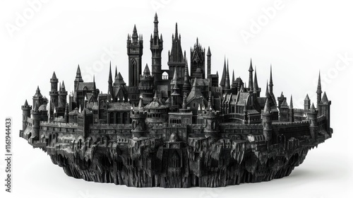 Fototapeta premium Black 3D-printed fantasy castle city model.