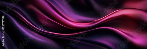 © Alice, Fototapeta premium Black dark purple red burgundy maroon magenta pink rose abstract background Curtain. Silk satin fabric. Silky shine glitter. Soft folds wavy line. elegant luxury festive romantic , Wide Banner