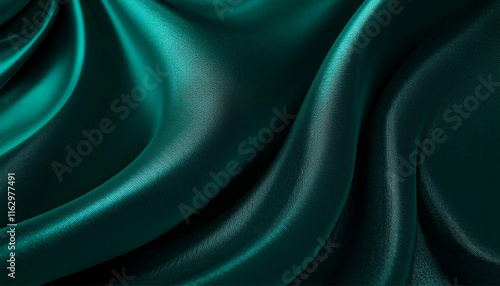 © Huzaim, Fototapeta premium Black Dark Teal Jade Emerald Sea Green Abstract Background - Silk Satin Drapery Curtain