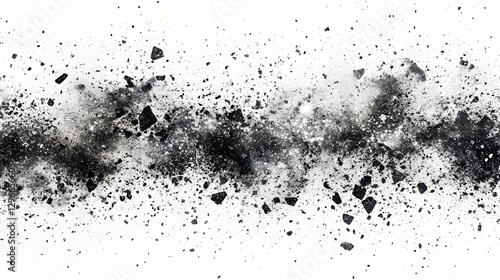 © virza, Obraz premium Black debris and dust particles exploding across a white background