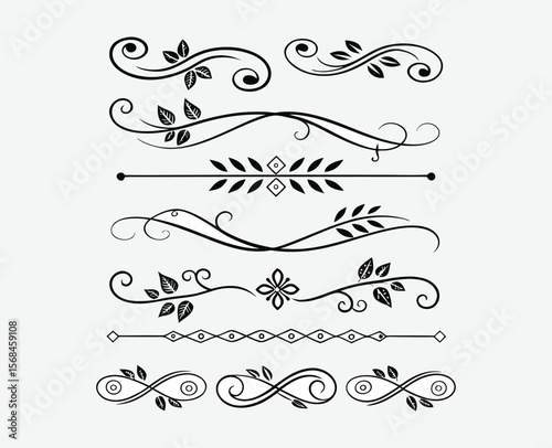 © Kamrul hasan sawon, Fototapeta premium Black Decorative Dividers Set – Ornamental Line Elements Collection