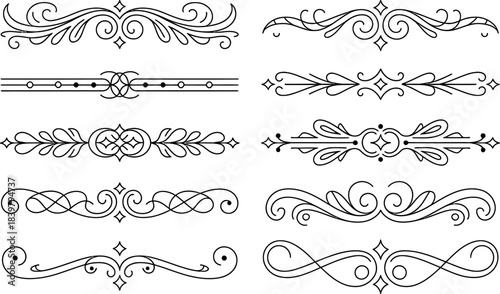© Rubina, Fototapeta premium Black Decorative Flourish Ornaments and Dividers scroll
