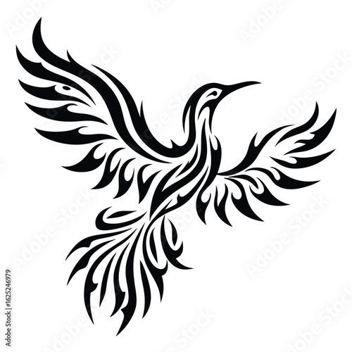 Fototapeta premium Black depicts stylized bird soaring with elegantly patterned wings, creating...