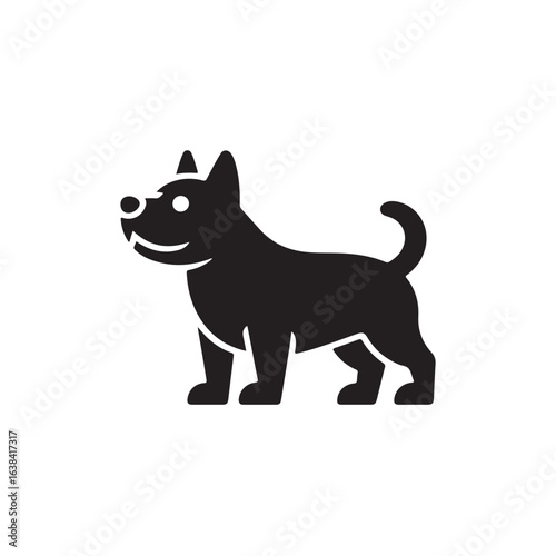 © Rani, Obraz premium Black dog icon standing profile view simple silhouette canine animal