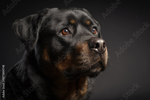 © Mikus, Obraz premium Black Dog with Brown Accents in Portrait