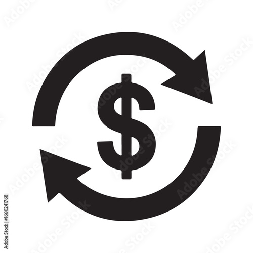 Obraz premium Black dollar sign with circular arrows currency money