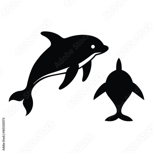 © Designer_Shimul, Fototapeta premium Black dolphin silhouettes leaping and swimming marine life ocean
