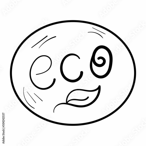 Obraz premium Black doodle eco type in circle with leaf. Icon on white background.