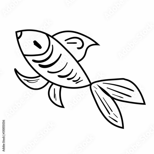 © Алина Козаченко, Naklejka premium Black doodle fish vector illustration. Animal icon for kids. Line art on white background.