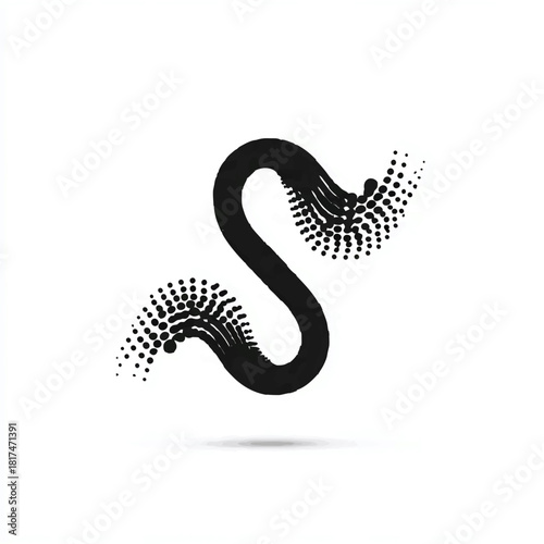Obraz premium Black Dot Pattern Forming Wavy Line on White