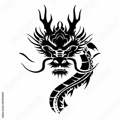 Fototapeta premium Black dragon head tattoo design
