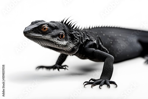 © Shabana, Obraz premium Black dragon lizard on white background, AI Generated