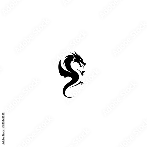 Fototapeta premium Black Dragon Silhouette on White Background 1.